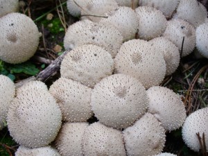 Also lots of common puffballs which can grow singly or in large groups and are edible when young.