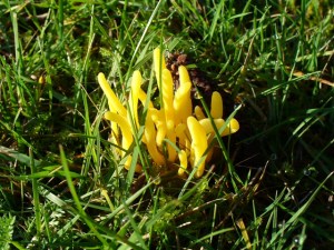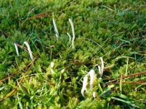 These unusual looking visitors are actually the fairly common Yellow Club but the white version below, sometimes called Fairy Fingers, is quite rare.