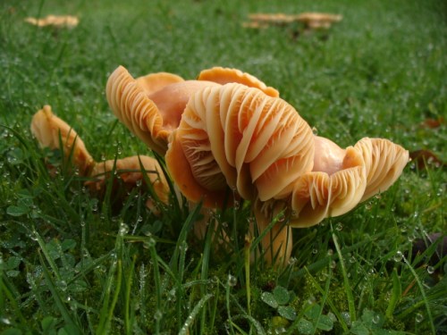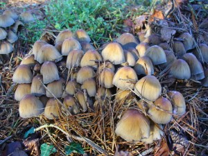 Here are some Common Inkcaps which, though edible, cause nausea, palpitations and other unpleasant effects when taken with alcohol. According to Roger Phillips they were once used to cure alcoholics in an ingenious form of aversion therapy!
