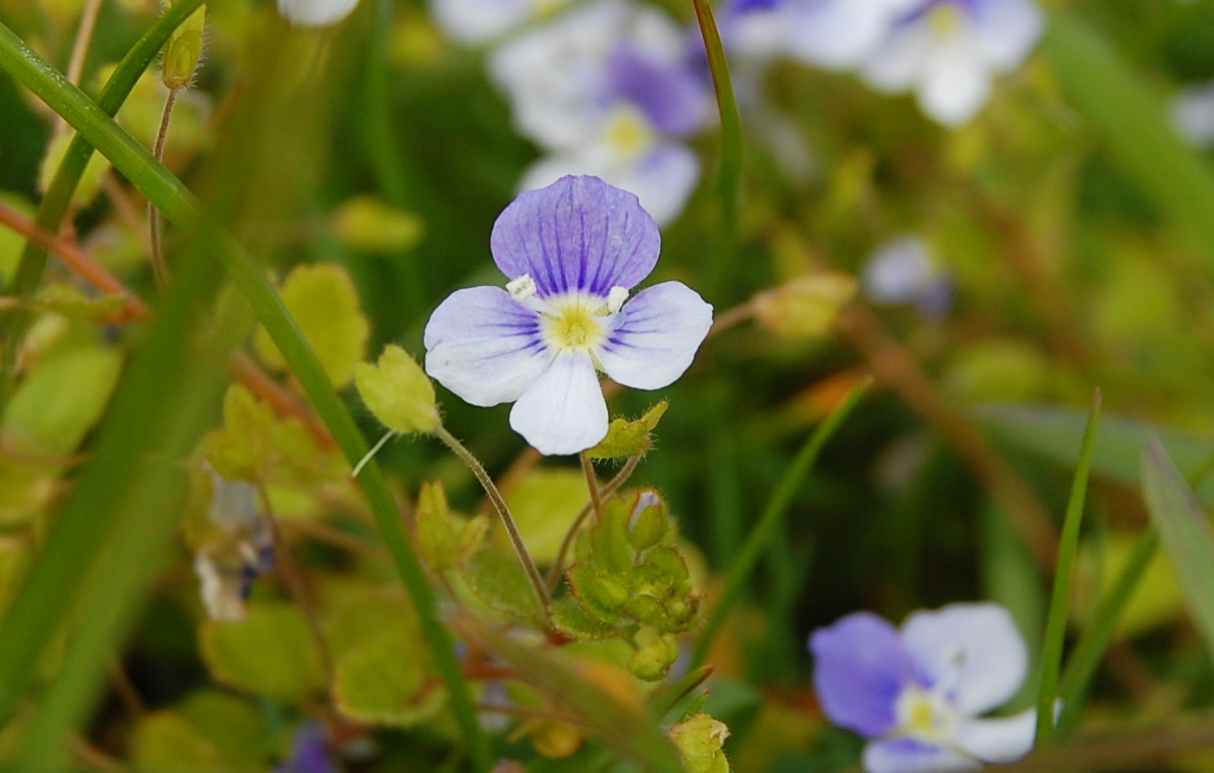 At first I had some difficulty differentiating between the various species as my wild flower books seemed to carry slightly conflicting information. After a bit of cross referencing I’m fairly convinced that the species I see growing abundantly are Common Field Speedwell (Veronica persica), Germander Speedwell (Veronica chamaedrys) and Slender Speedwell (Veronica filiformis). There’s also an Ivy-Leaved Speedwell (Veronica Hederifolia), Brooklime (Veronica beccabunga) and Heath Speedwell (Veronica Officinalis), the later being the variety most commonly used in medicine, among many others.