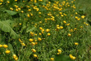 While Dandelion suns around thee blaze,