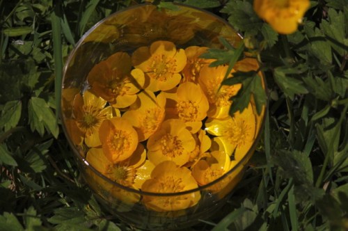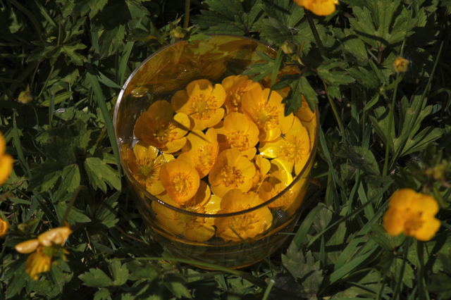 I waited for a suitably sunny morning, then dashed out this weekend to grab the opportunity when it finally arose. Even so I only managed two hours of sun infusion before the clouds came a’rolling in but such is life for a flower essence maker in this variable UK climate!