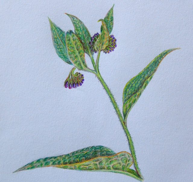 Well I certainly didn’t expect Comfrey, partly because it’s a plant I don’t often work with and partly because I had several other plants around me that I consider close allies and was expecting to be ‘chosen by’. I’ve been interested in the idea of Goethean observation for some time as it seemed to me a wonderful way of honing our senses, learning about plants and moving beyond ourselves and our limited perceptions to connect to the wider world around us.