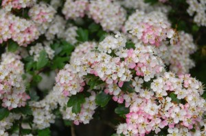 There are thought to be up to 1,000 species of Hawthorn worldwide, the two most common in the UK are Crataegus monogyna and Crataegus laevigata. Usually white, the blossoms may also be a light or deep pink.