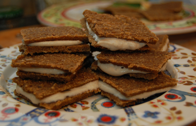 Layer the cream between two of the biscuit squares and enjoy! If you are planning to keep them longer than a couple of days it’s best to refrigerate the biscuits and the cream separately and assemble as you go along, they’ll last longer this way.