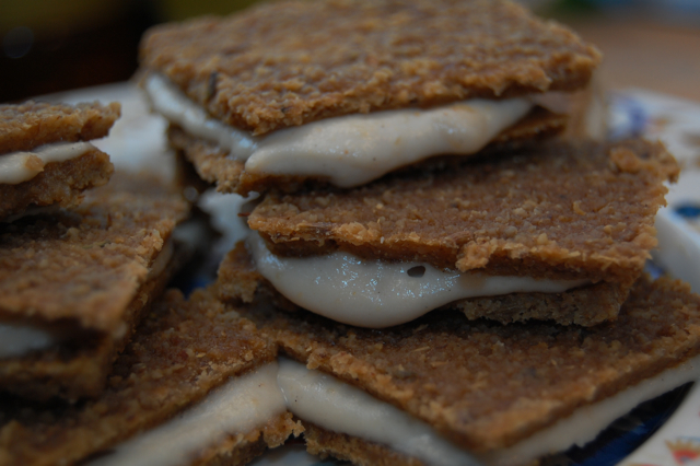 Blend all the ingredients together until they form a thick cream. Add the liquid a little at a time, adding a bit more if it’s too thick to blend. You do want it to be pretty thick though so it doesn’t ooze out of the sides of the biscuits.