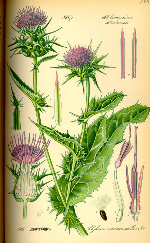 Botanical illustration of Milk Thistle courtesy of Wikipedia