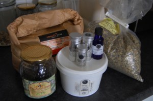 Suitable ingredients for a salve include many vegetable oils (such as olive, sunflower, sweet almond, apricot) and beeswax or vegetable wax such as candelilla or carnuba. In older herbals lard or animal fats were often used and these are enjoying something of a comeback amongst some traditional herbalists but, as a vegetarian, they don’t feature on my radar so I won’t be talking about them here. Many herbal books include recipes made with mineral oil byproducts such as petroleum jelly or vaseline but again, as I don’t work with them, I will not be including any information here.