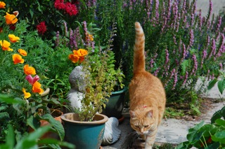 This goldenrod is not the native variety (Solidago virguarea) but the Canadian (Solidago canadensis) which was originally grown in gardens but is now not uncommon as a wildflower here in the South. It is very striking with a delicious heady fragrance which results in it being surrounded by clouds of happy insects.